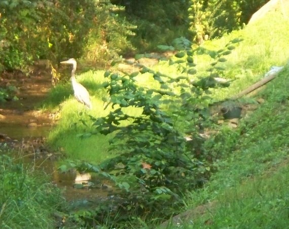 I spotted Mr. Crane a regular morning visitor enjoying a few minnows from the creek.