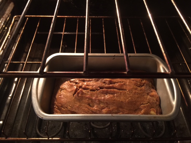 5.) Pour the bread mixture into the oiled pan and bake for 35-40 minutes, or until a wooden toothpick comes out clean.