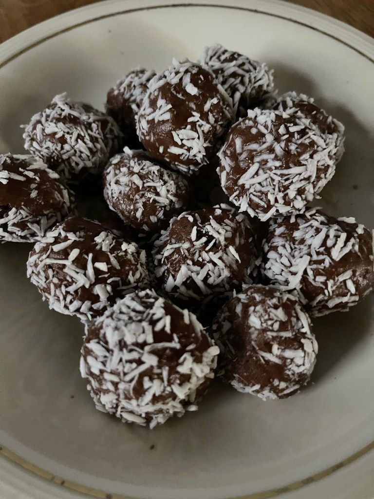 I rolled this batch in fine unsweetened shredded coconut for an added flavor! Yum!!!