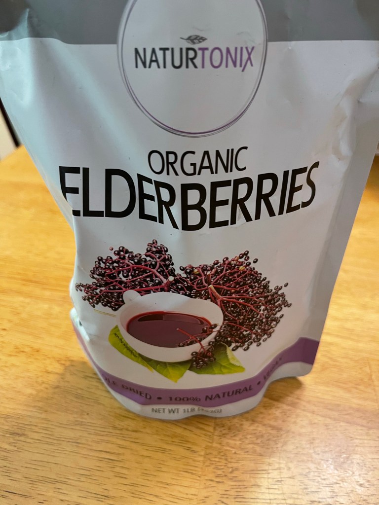 There were challenges along the way. But, with determination, I was able to overcome those. First, I wasn’t able to find someone with an elderberry tree that was willing to part with elderberries, so I did the next best thing. I looked on Amazon for organic dried elderberries. The ones pictured below had the best price, largest amount, and the best rating.