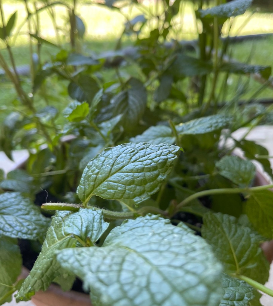 Lemon balm is a perennial that loves to thrive in partly sunny beds. Forewarning, it It will spread quickly and overtake other plants. We grow it in a huge flower pot as it is a bit of an escape artist and will escape beds and overtake other plants. After the last harvest, the pot is covered with a warm bedding to protect the roots from the harsh winter elements. Some years, it returns and some it doesn’t. However, it is easy to grow from seeds. The plants are also inexpensive at most green houses. It will always return if you plant it in the ground. It can be planted in an isolated bed and thrive for years to come. Like all mints, the more it’s pruned, the thicker it gets. It actually needs pruned frequently in the summer and early fall to prevent it from getting leggy. Pruning is easy. I use kitchen shears to snip the stem between the leaves. Before you know that snipped stem produces two or more new stems that produce more leaves. A good cutting does it well.