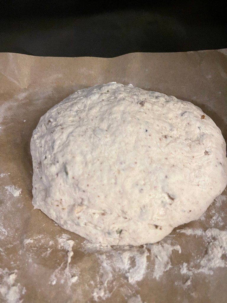 The beginning stage of the dough. Stage two rising.The finished product; seeded crusty artisan bread.